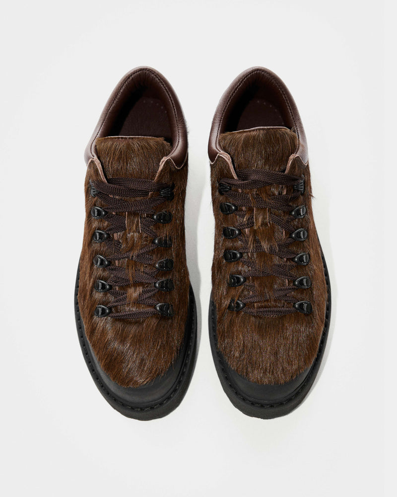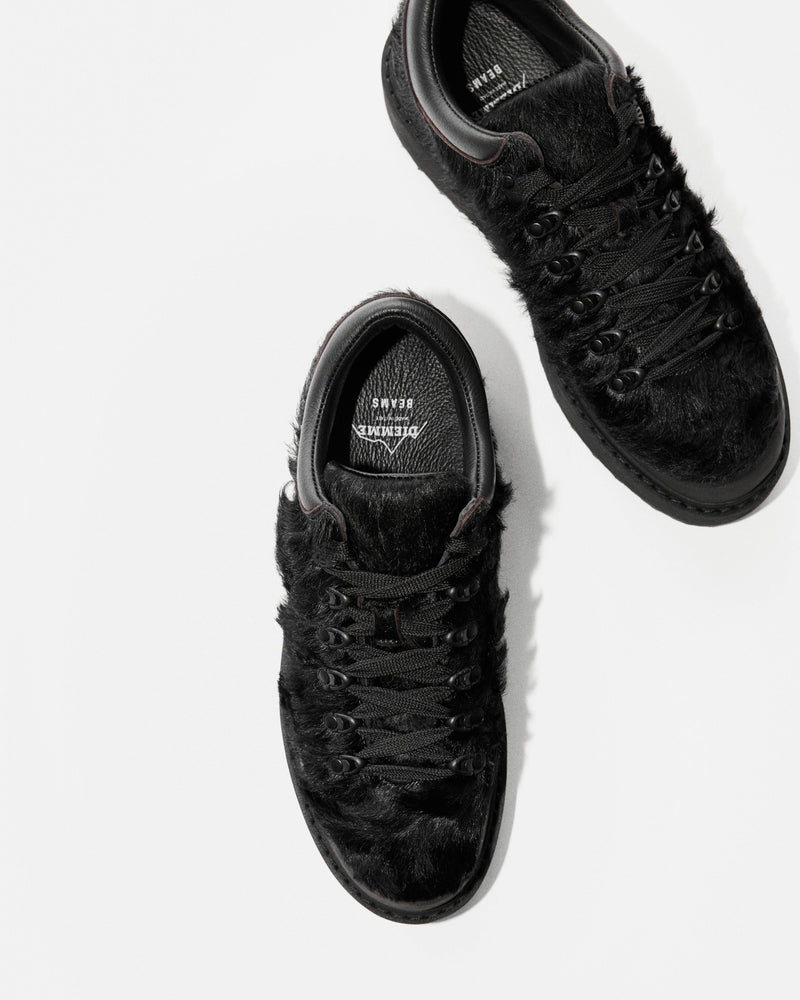 Diemme and BEAMS present an exclusive edition of the Cornaro Due Gomma in Black Haircalf and Brown Haircalf, designed in Japan and made in Italy, releasing on November 22nd. Founded in 1976 in Tokyo’s Harajuku district, BEAMS helped shape modern Japanese casual culture through its eclectic mix of global brands, in-house labels, and cross-disciplinary collaborations. This release continues that spirit, bringing BEAMS’ distinctive design perspective together with Diemme’s Italian production. The Cornaro Due Gomma is a clean, mid-cut style that bridges everyday utility with Diemme’s mountain roots. This exclusive Black Haircalf and Brown Haircalf edition draws from the Cornaro Due Gomma, which gives the original silhouette a contemporary twist: a wide tonal rubber rand, tonal hardware, and matching hiking laces lend the shoe a grounded, modern character. Usually crafted from sturdy wax-treated suede for water resistance, the Cornaro Due Gomma is known as a lightweight, practical low-top designed for shifting weather and inspired by alpine classics. In this BEAMS version, the black haircalf upper adds a rich, tactile surface that elevates the pared-back form. Purposeful and understated, it transforms outdoor cues into a quietly confident everyday staple. The Diemme x BEAMS Cornaro Due Gomma in Black Haircalf and Brown Haircalf will be available exclusively through BEAMS on November 22nd.