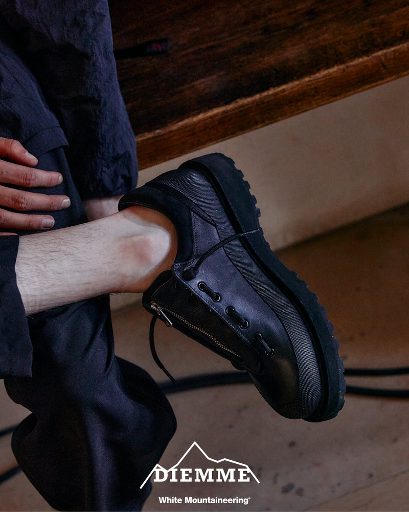 The collaboration between Diemme Footwear and White Mountaineering marks a union of Italian craftsmanship and Japanese outdoor-inspired design. Born in the mountainous landscapes of northeastern Italy, Diemme brings its expertise in specialized footwear, while White Mountaineering contributes its iconic mountain graphics. The collaboration not only celebrates the shared passion for quality and style but also introduces a distinctive blend of rugged elegance to the world of footwear. We are pleased to introduce the first collaboration between Diemme and White Mountaineering, two brands rooted in the same intersection, where performance meets everyday utility, and style melts into function. The collab shoe Cornaro Zip is based on Diemme's Cornaro Gomma model, a low hiking boot built upon the last of Diemme's Iconic Roccia Vet. Through the lens of White Mountaineering, Cornaro Gomma has been given a grunge touch. The detachable zip-cover, that turns the lace up into a zip-boot, is part practical and part head-turning.