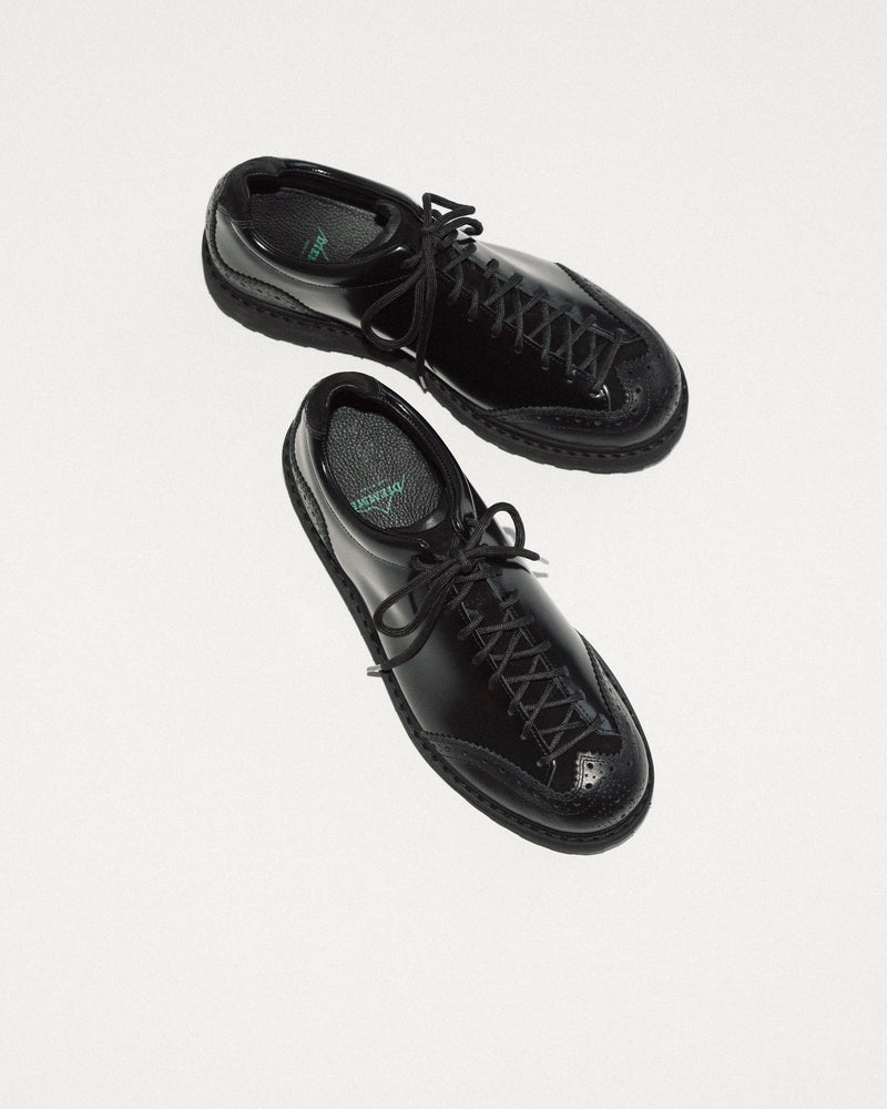 • Ampezzo with a twist. This version features a wingtip toe cap and full brogue detailing inspired by fine Italian dress shoes. Zigzag edges, tonal stitching, and decorative perforations bring a sophisticated layer to this rugged silhouette. Built for the city with alpine roots.