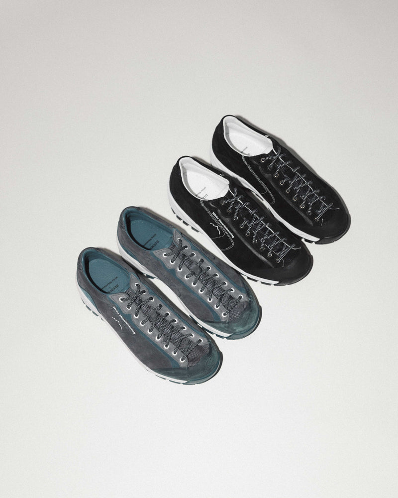 Diemme and Japanese label White Mountaineering have collaborated to reinterpret the Movida sneaker, a Diemme original reintroduced in 2019. Inspired by climbing shoes, this low-top design features a supple suede upper and a durable, low-profile Vibram sole. Available in black and charcoal, the sneaker blends White Mountaineering’s outdoor-inspired aesthetic with Diemme’s expert craftsmanship, creating a versatile style for both urban and outdoor settings. The collaboration debuted on the runway during White Mountaineering’s Spring/Summer 25 show in Paris. Now available at Diemme.com and whitemountaineering.com, at the White Mountaineering stores and select retailers.